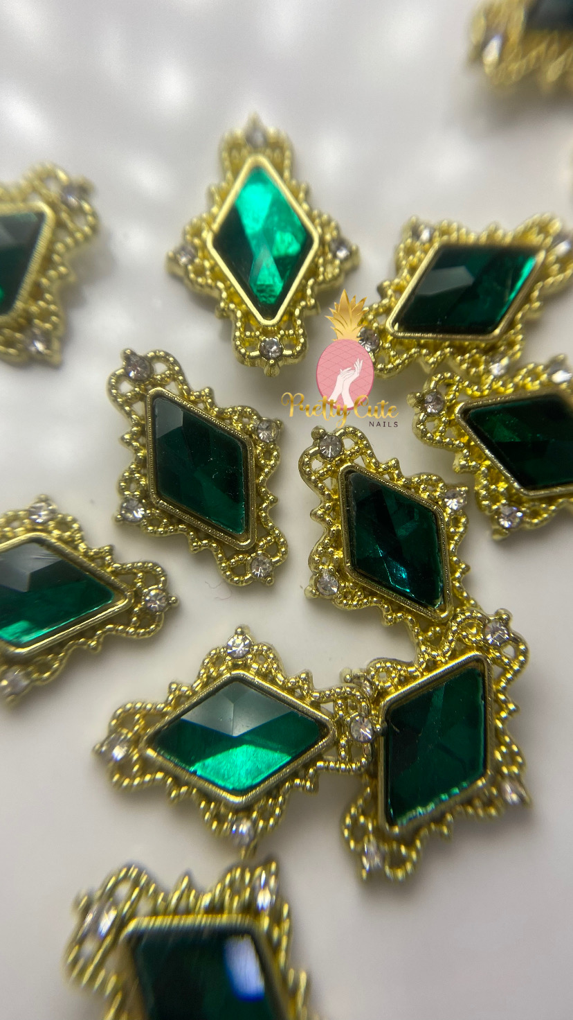Gema verde con bordes dorados